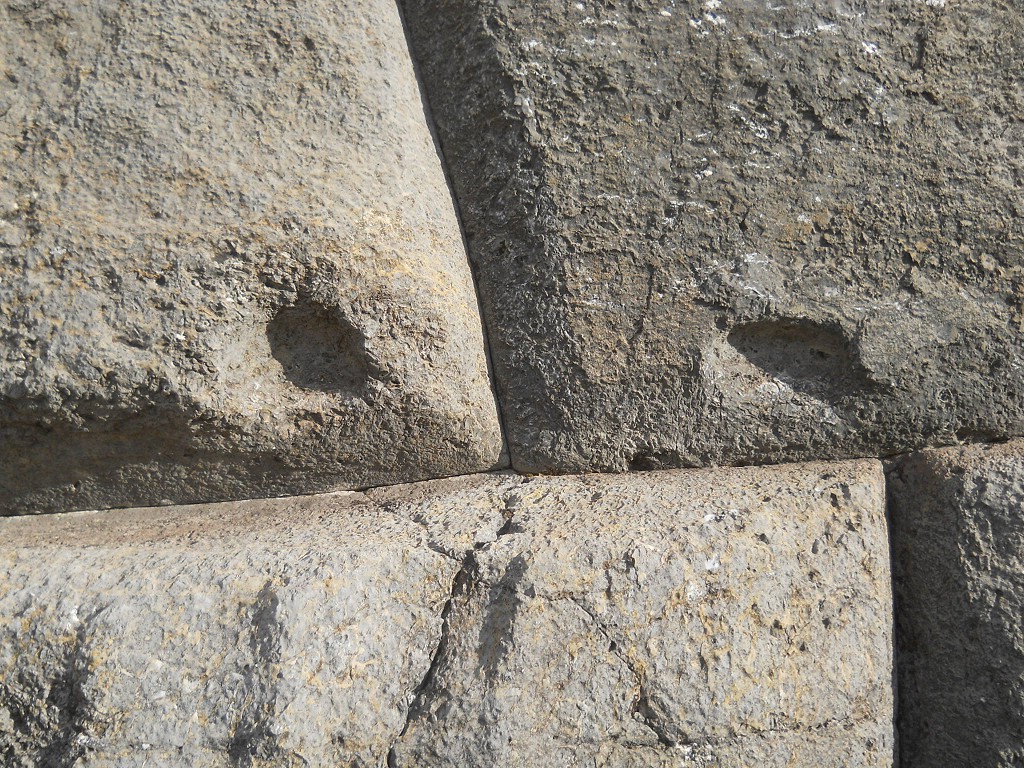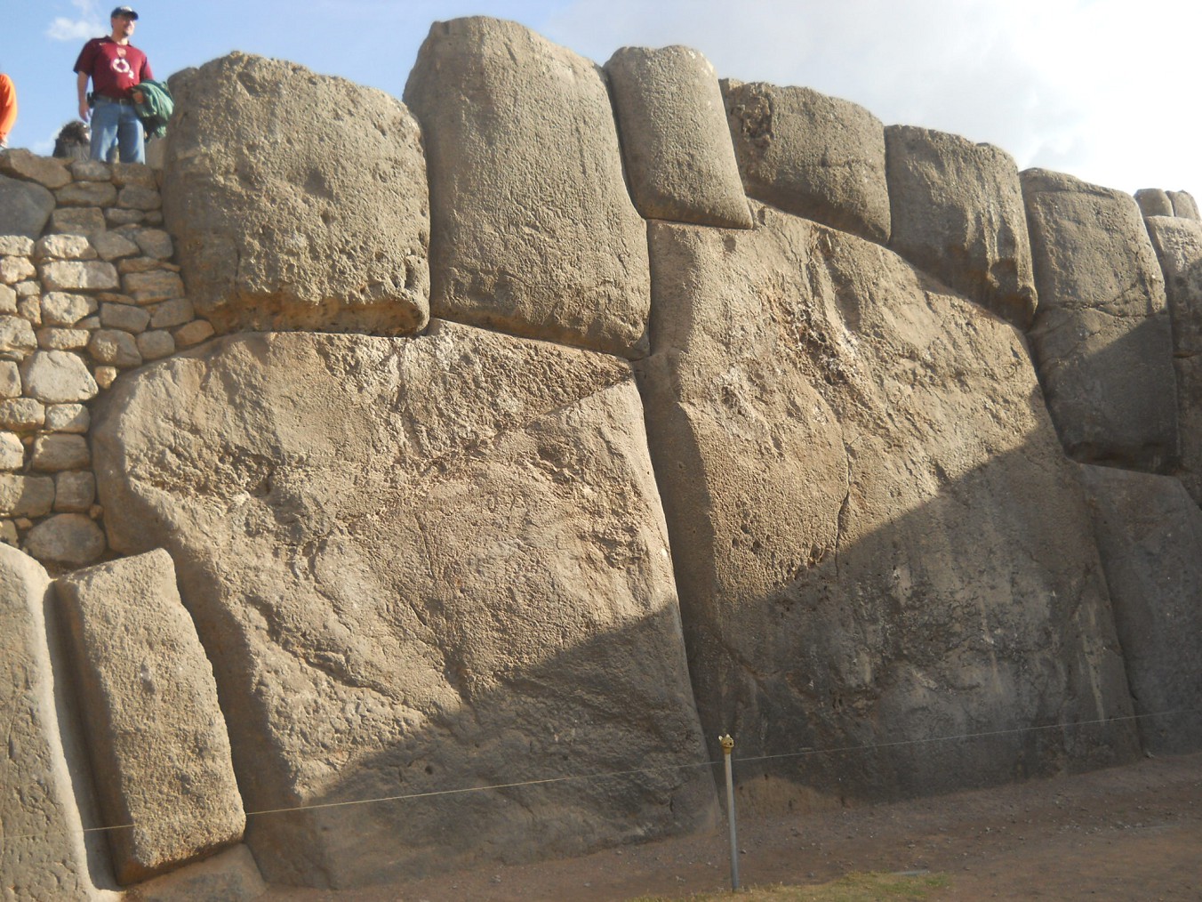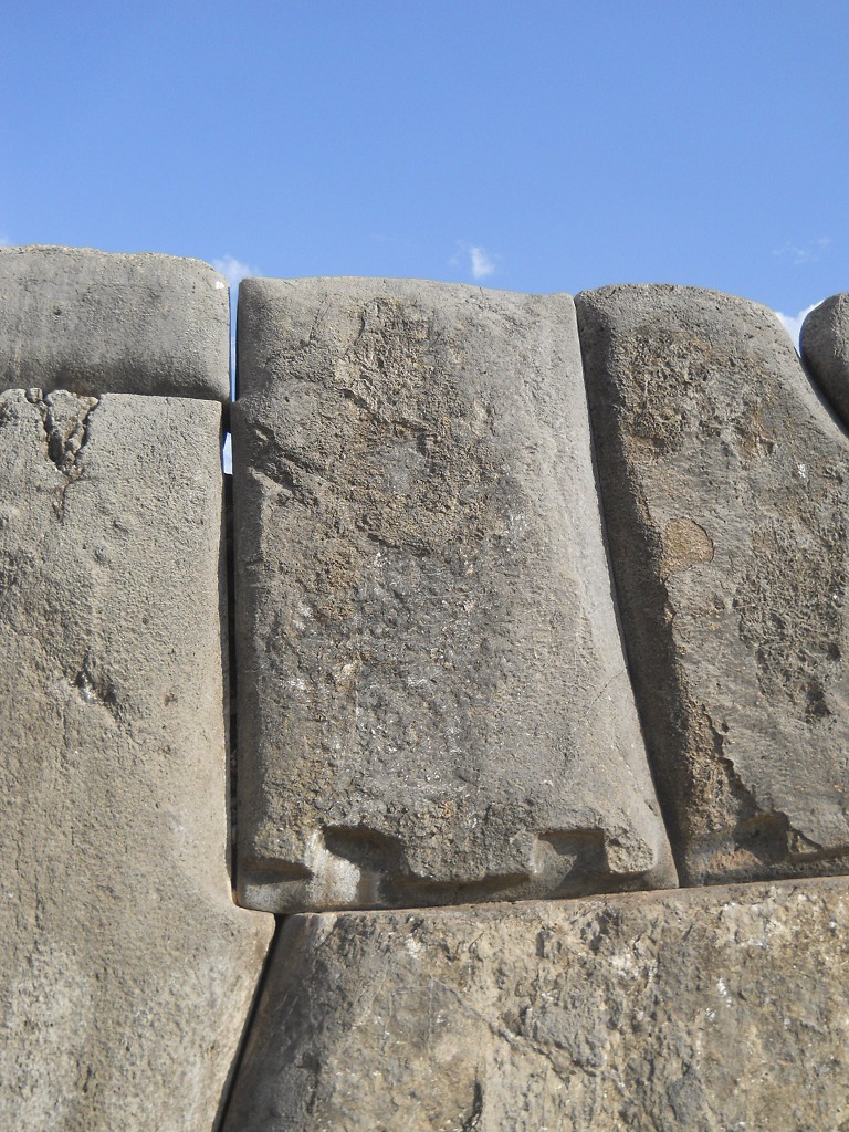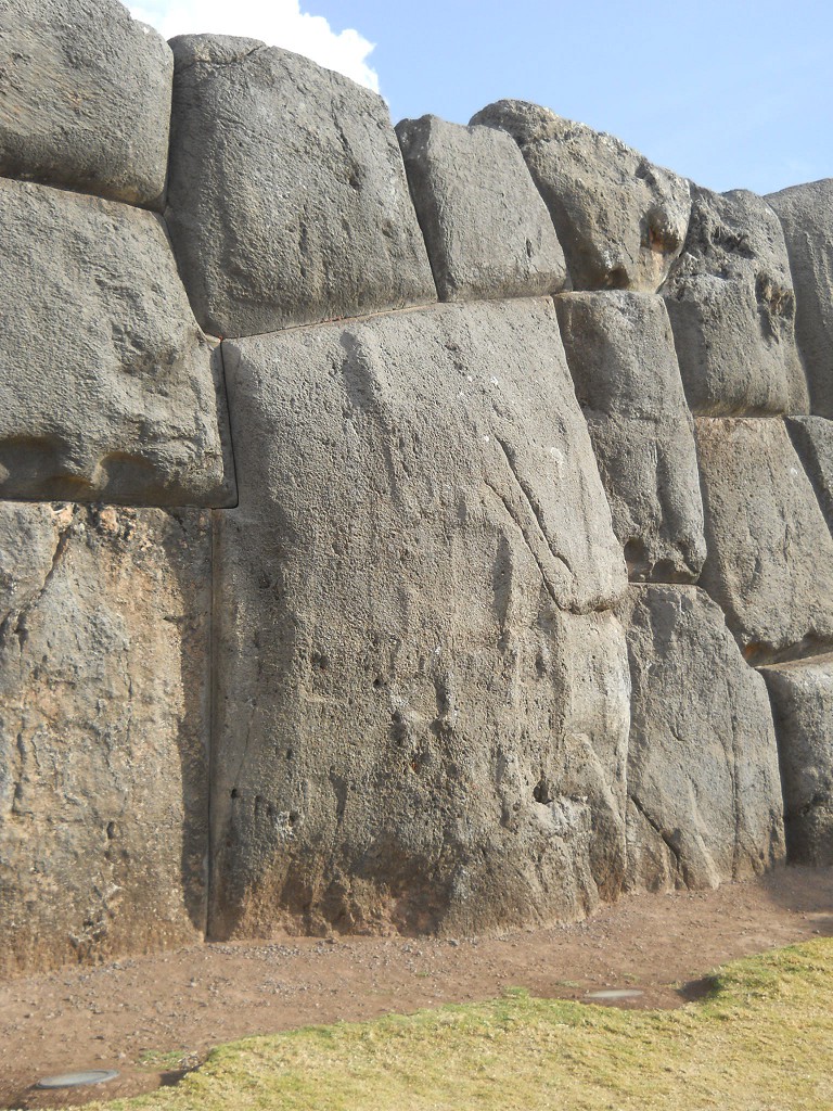 Details of the walls of Sacsayhuamán: precision of cut stones accurate to the mm without mortar, inclined and quakesafe