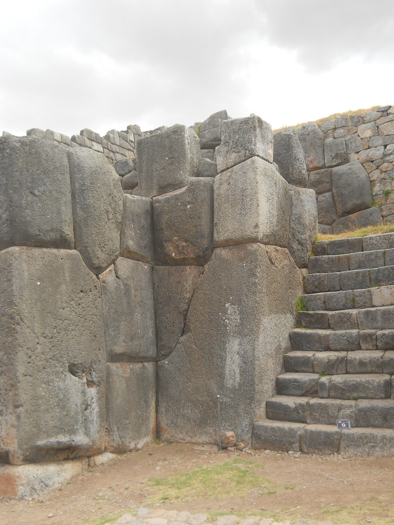 Cusco Sacsayhuamán, another stairs with geometric cut giant corner stones 4,5