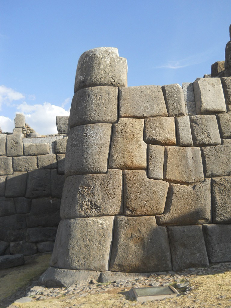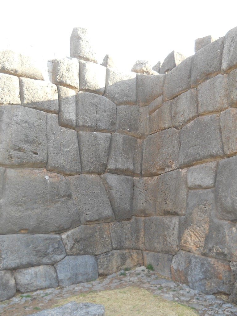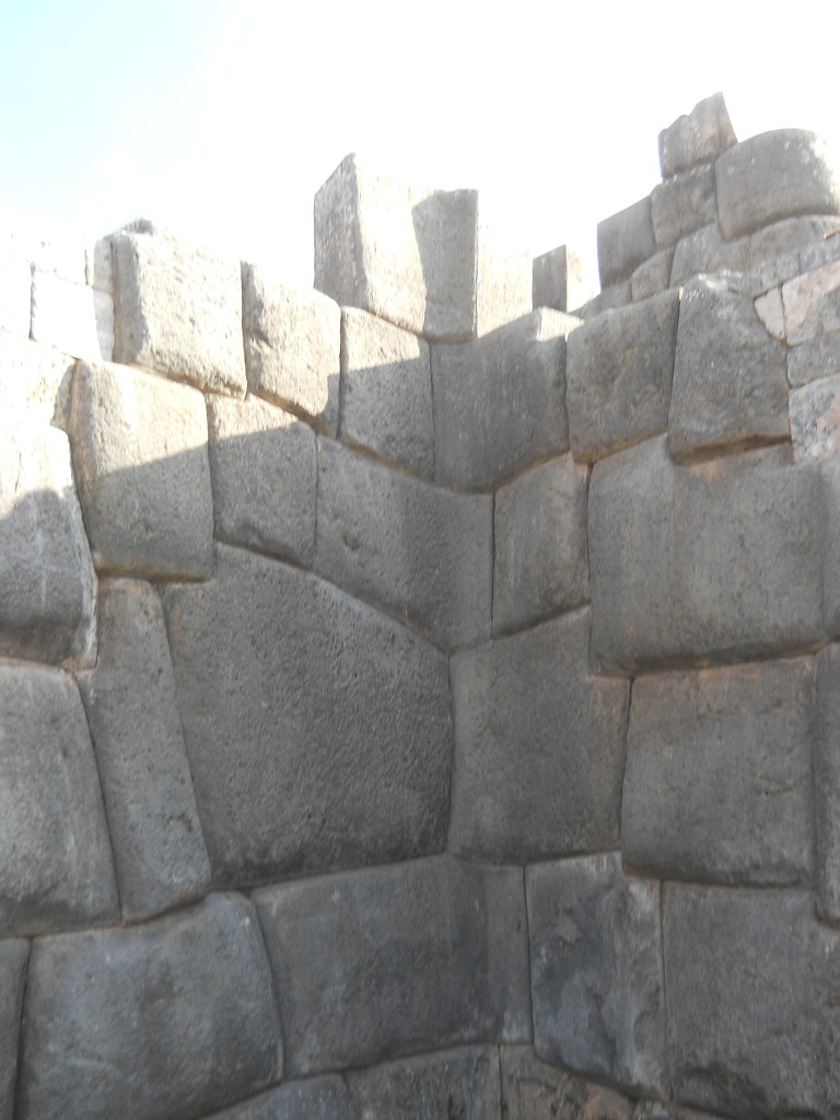 Cusco, Sacsayhuamán, terrace 1, the wall with the stone of 10 ends (decagonal stone) 3,4 - zoomA wall with "fat" bellied stones![]()