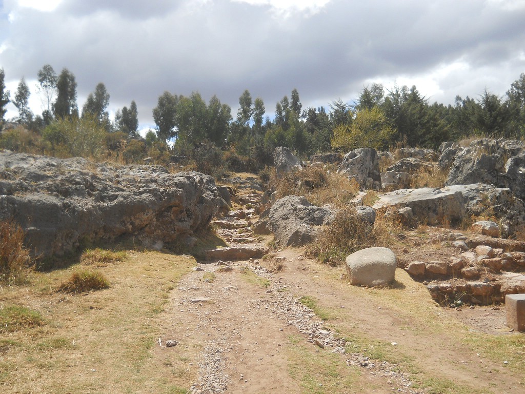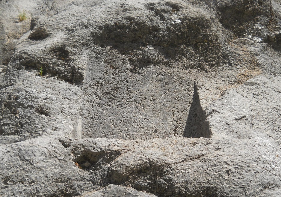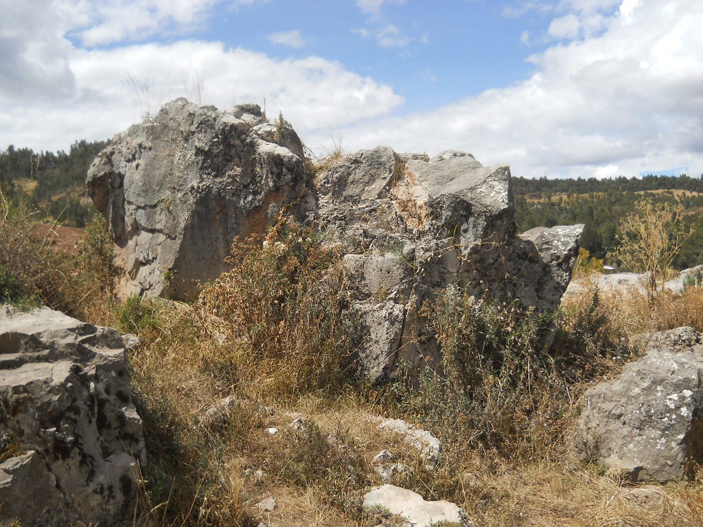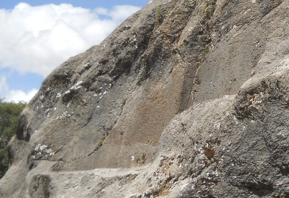 Cusco Sacsayhuamán, on the way to the rock of stairs and thrones "Chinchana grande", rock with cut surfaces - zoom