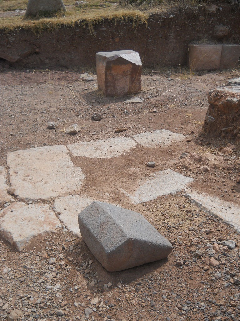 Cusco Sacsayhuamán, on the way to the rock of stairs and thrones "Chinchana grande", groundwork and a trapezoid cut stone in form of a house 1,2