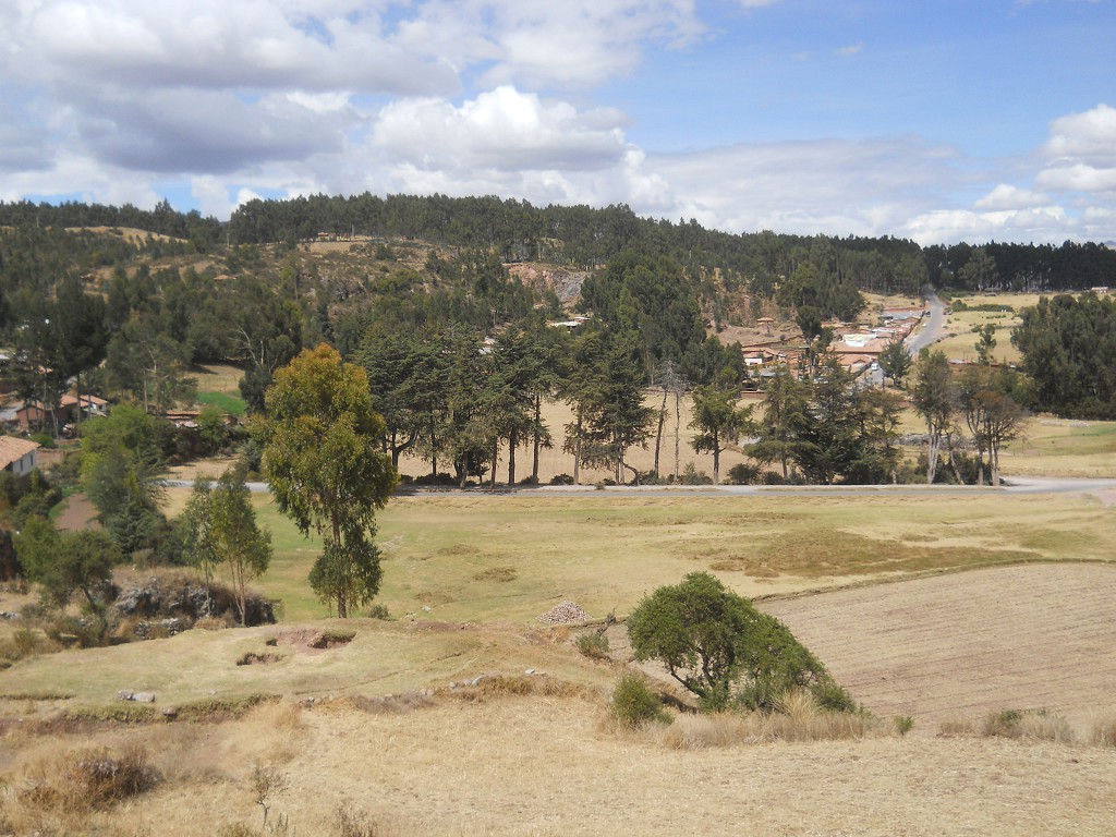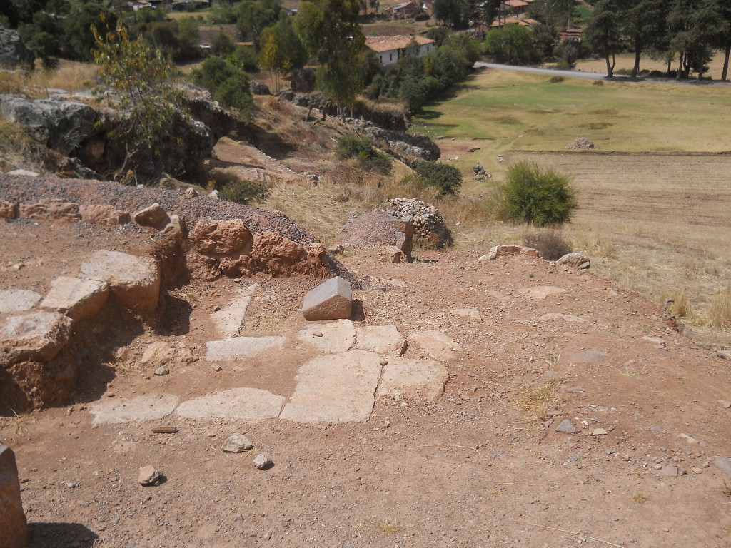 Cusco Sacsayhuamán, the rock of stairs and throness "Chinchana grande" in the meadows - zoom