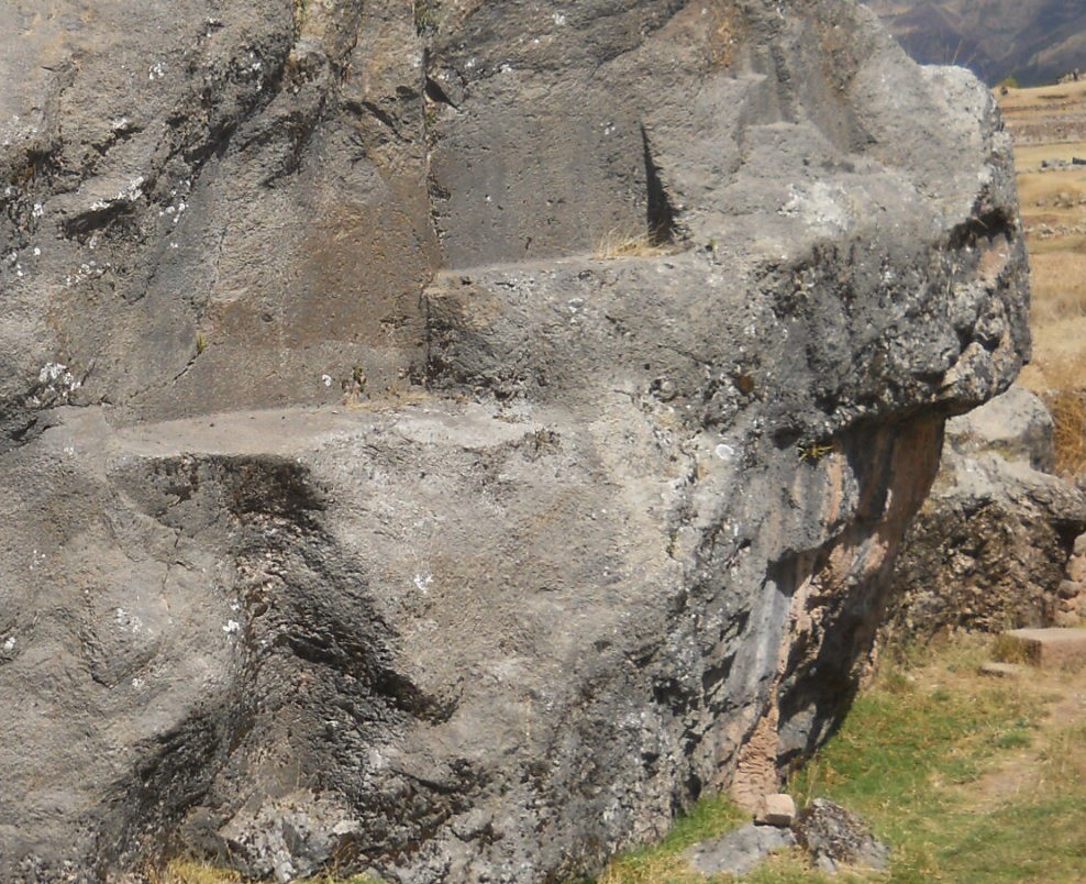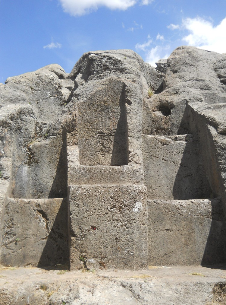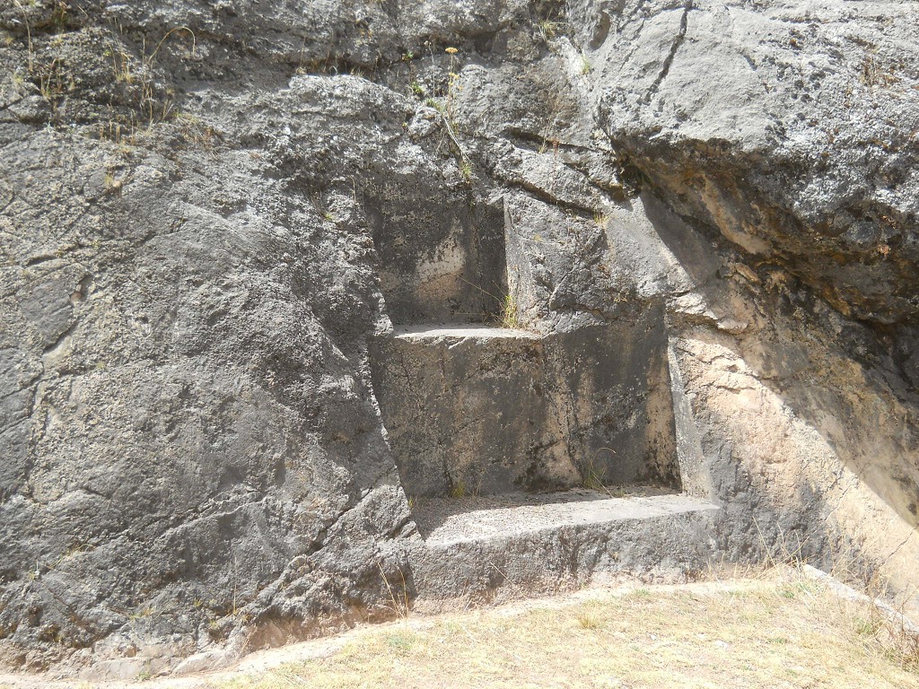 Cusco Sacsayhuamán, rock of stairs and thrones "Chinchana grande", singular throne - zoom