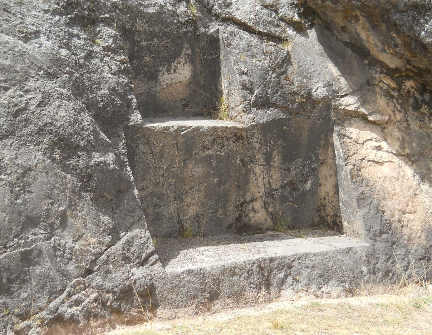Details from the rock of stairs and thrones "Chinchana grande", view 3, big cuts of the big throne surfaces, zooms 1,2