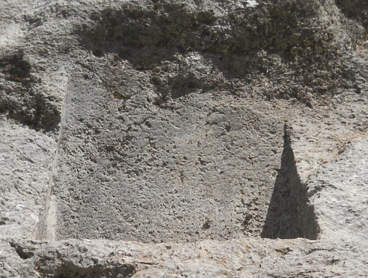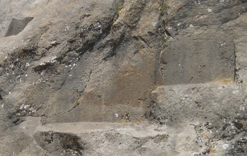 Details from the rock of stairs and thrones "Chinchana grande", view 3, big cuts of the big throne surfaces, zooms 3,4