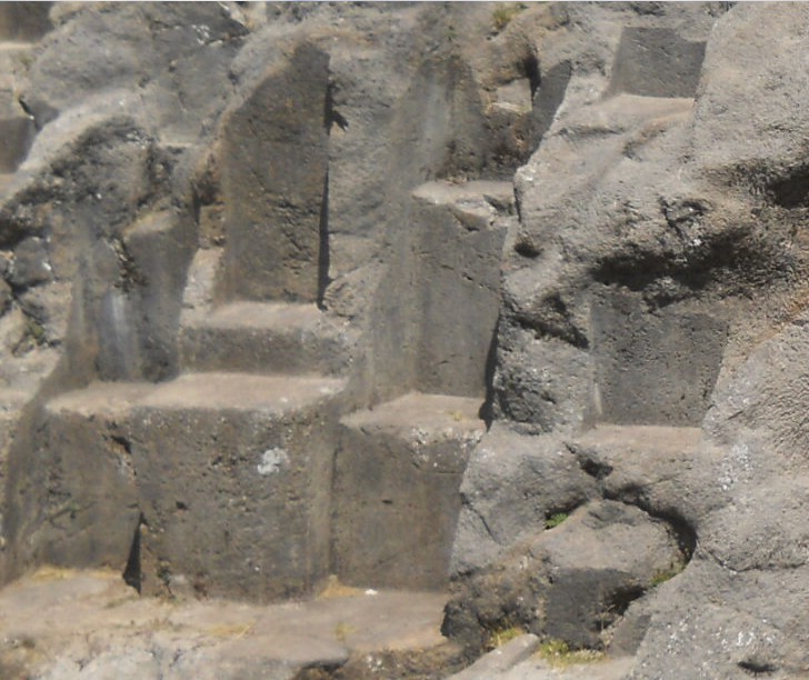 The rock of stairs and thrones "Chinchana grande" (rock of stairs) part 1, detail 1: throne - detail 2: zoom of the stairs
