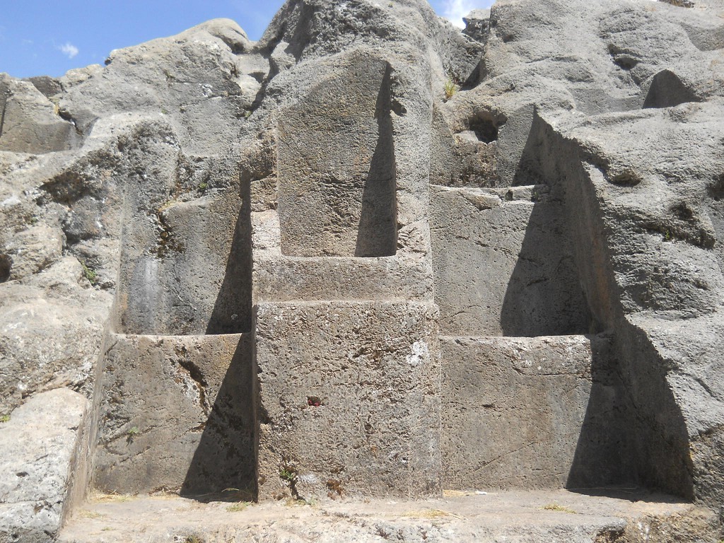 Cusco Sacsayhuamán, rock of stairs and thrones "Chinchana grande", multiple throne 3,4