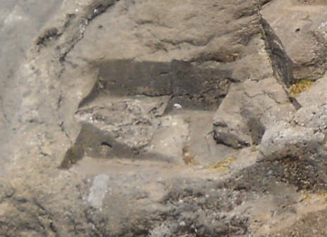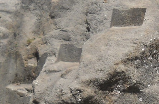 Details from the rock of stairs and thrones "Chinchana grande", view 3 with big thrones, zoom