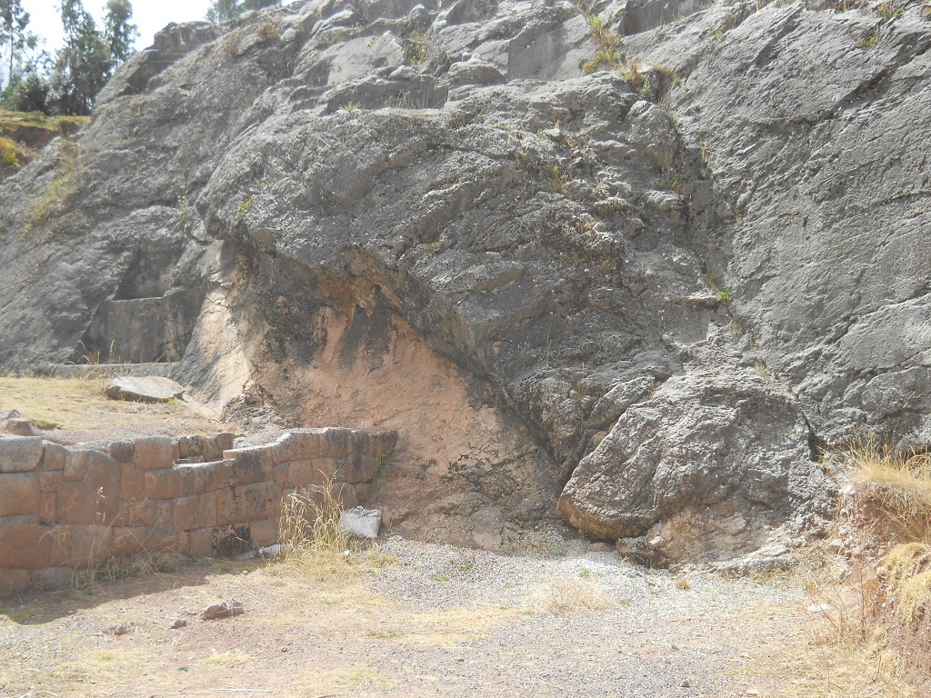 Area of the rock of stairs "Chinchana grande": the connection zone of the Inca wall with the black red rock 1,2