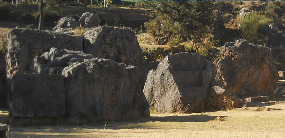 Cusco Sacsayhuamán, giant stones and thrones in a side area, zoom