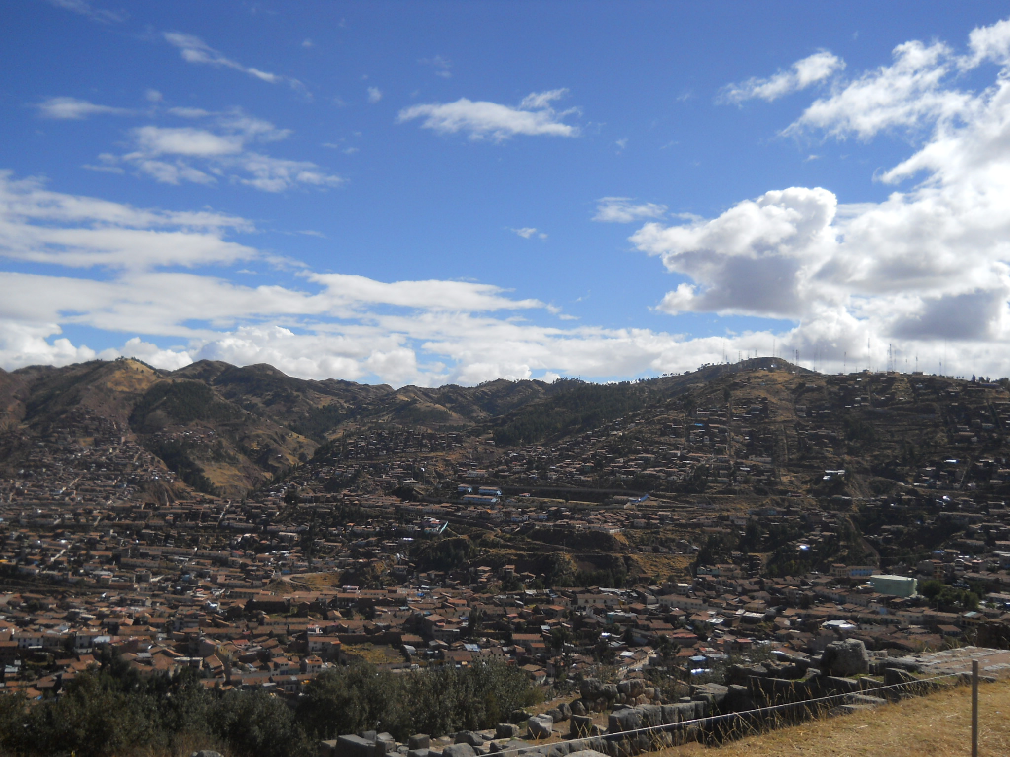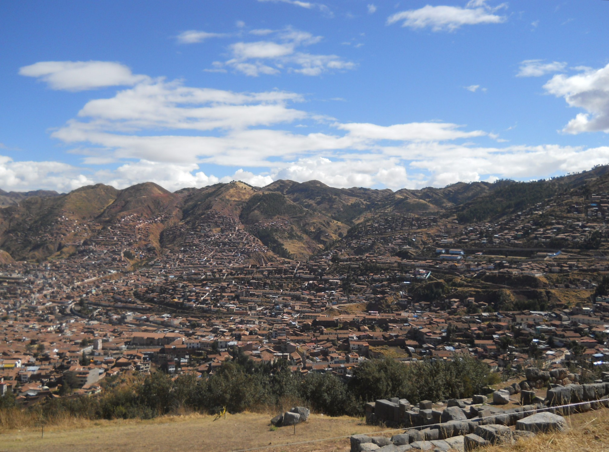 Sacsayhuamán (Cusco), quinto piso, vista a Cusco, foto panorámica