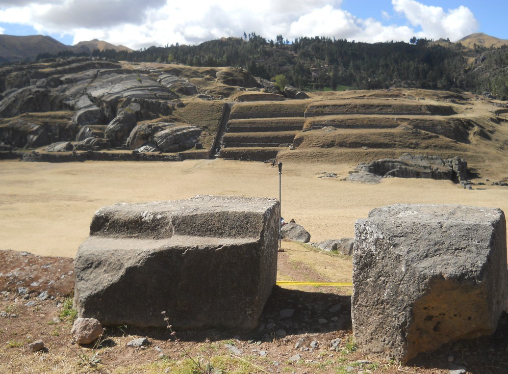 Sacsayhuamán (Cusco), quinto piso, regreso, muros 01+02, dos piedras grandes