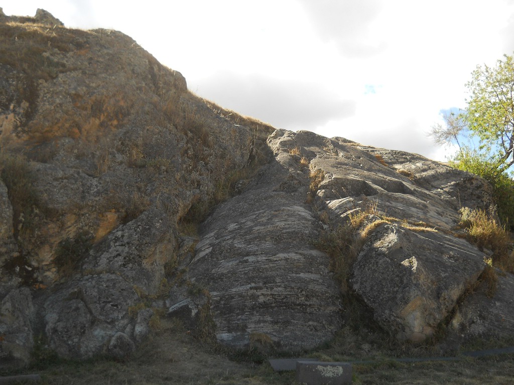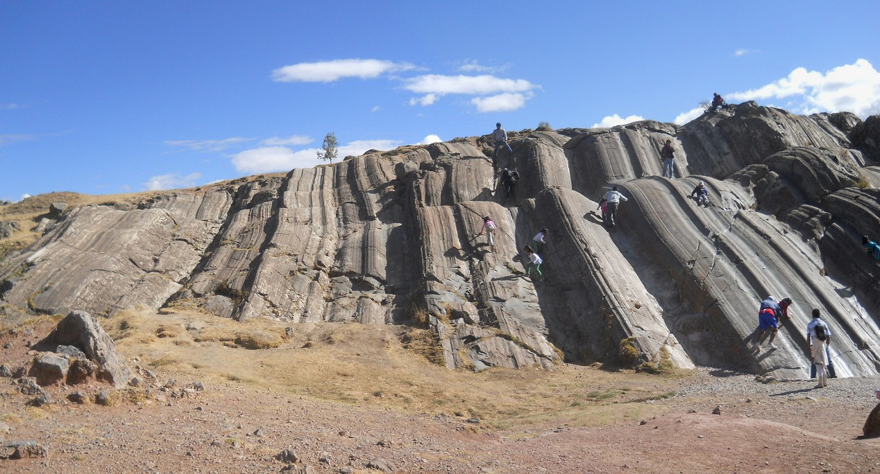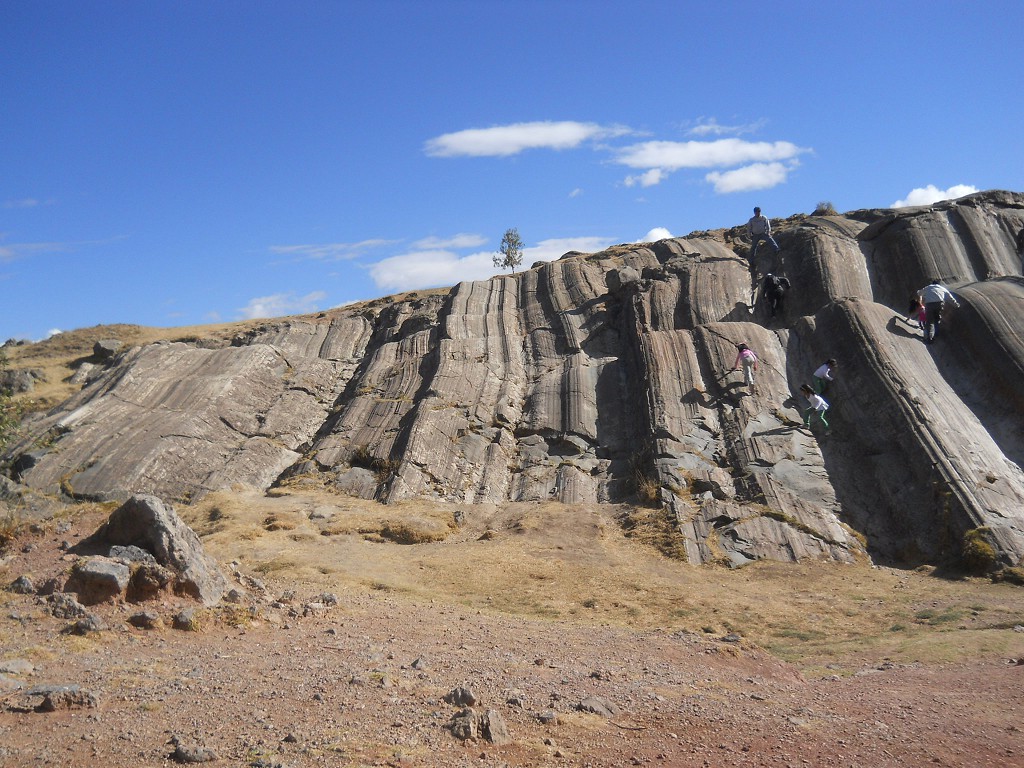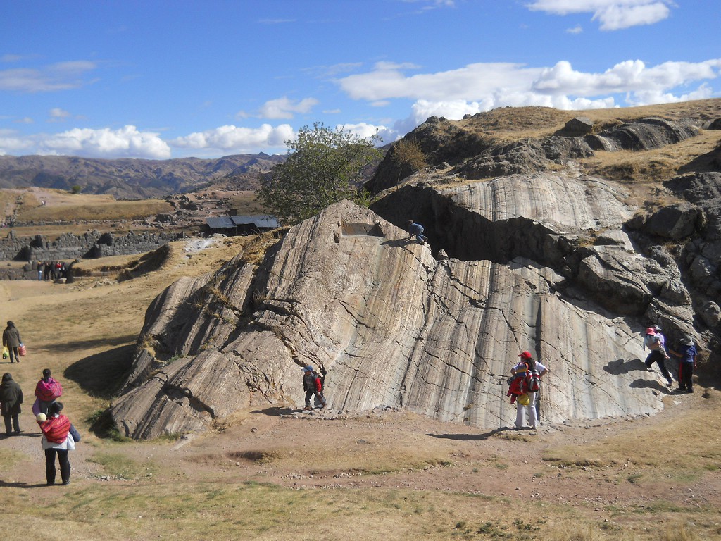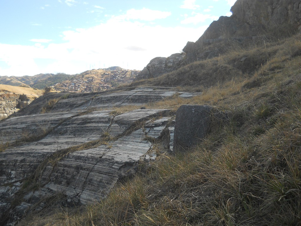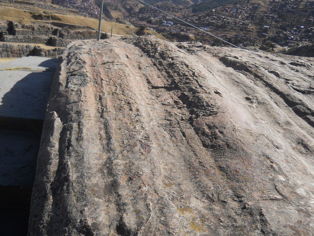 Con esa colina en Sacsayhuamán debe haber pasado algo raro. Normalmente formas tectonicas como así son provocados por glacieres, pero el lugar es muy local por eso no puede ser. El pionero Däniken piensa que esas huellas serían por una bomba atómica.