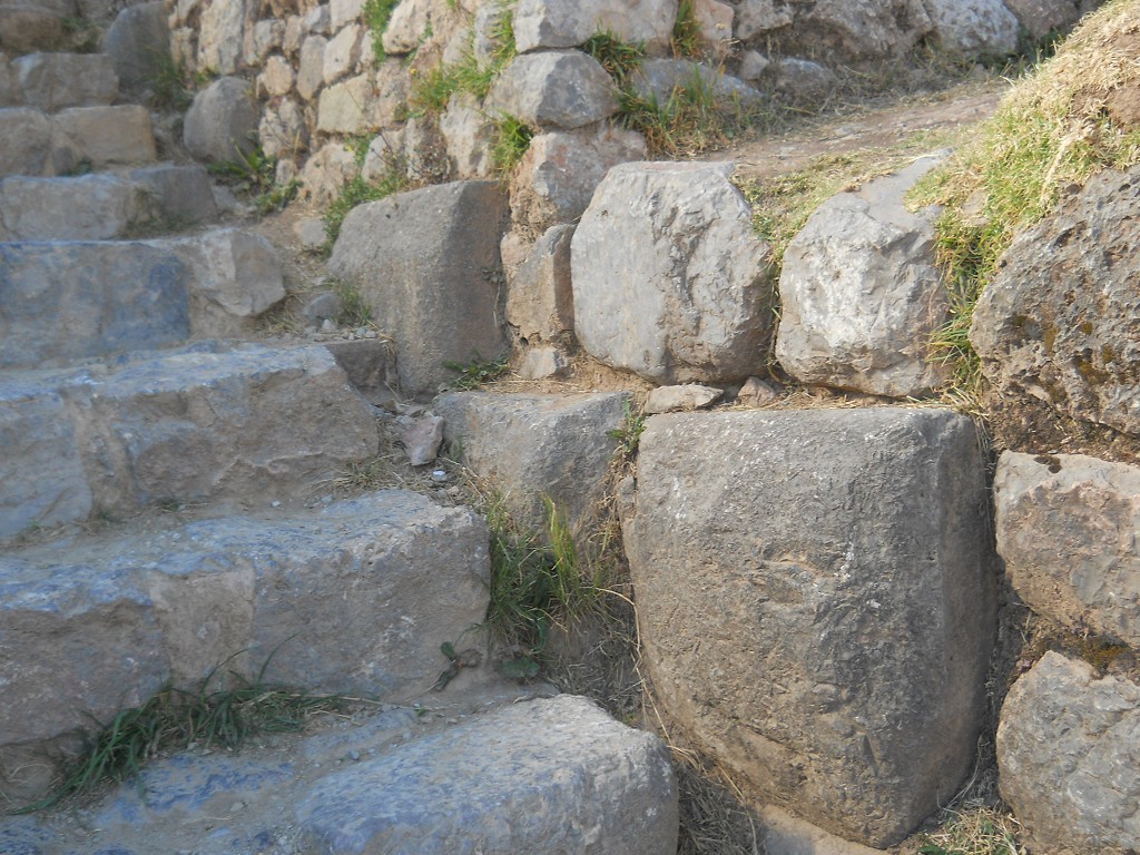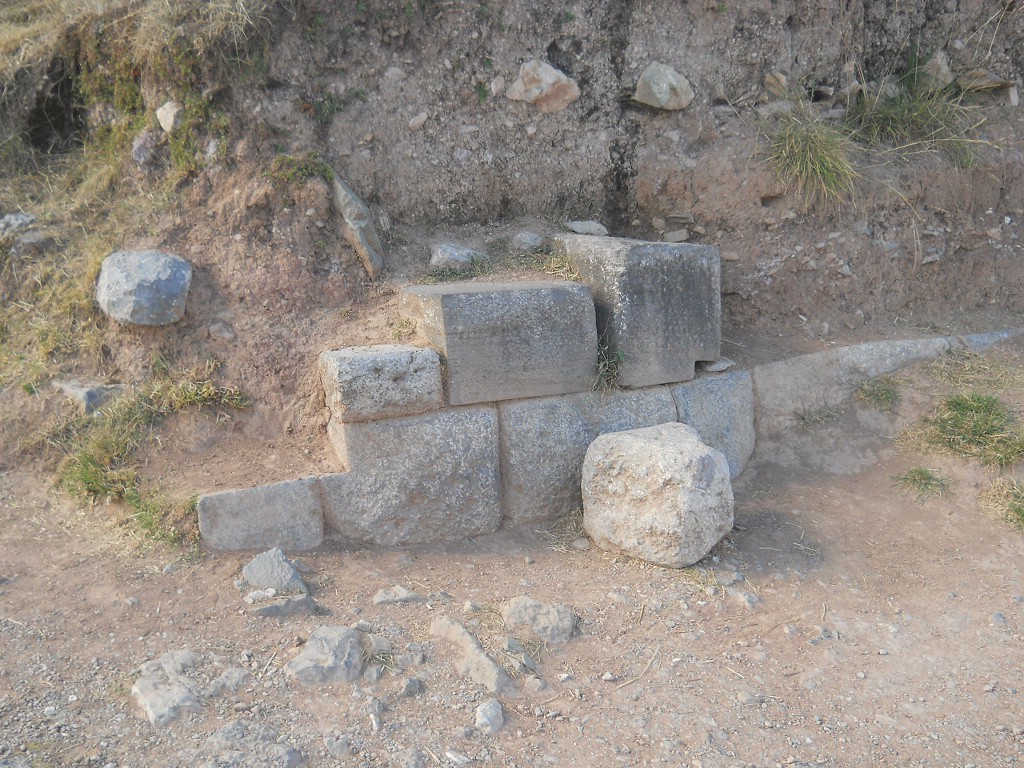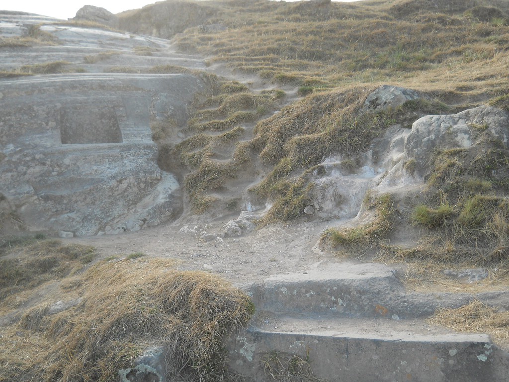 Sacsayhuamán (Cusco), la colina aplanada, la escalera 01 - las piedras cortadas al lado 1+2
