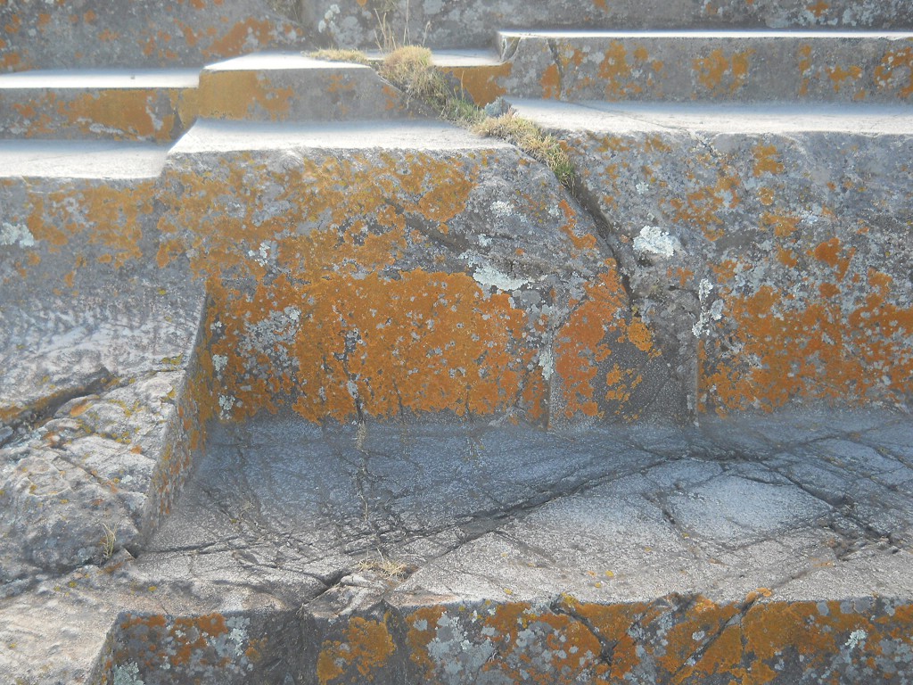 Sacsayhuamán (Cusco), el trono gigante en la colina aplanada, detalle izquierdo 1,2,3