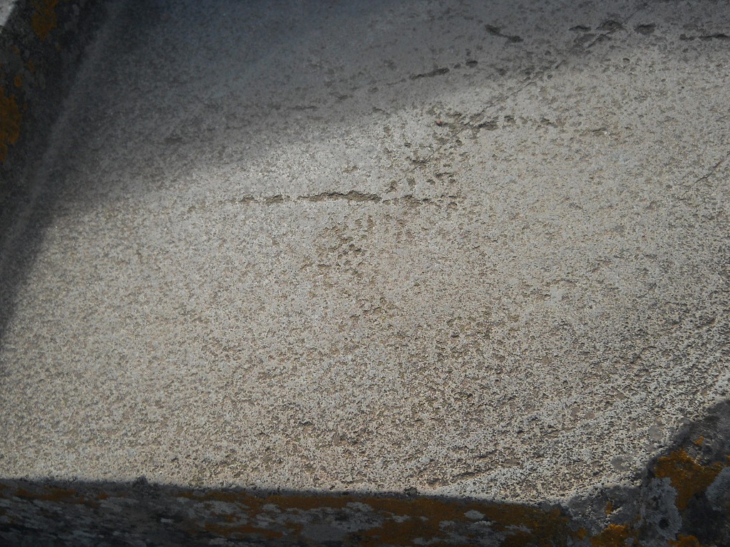 Sacsayhuamán (Cusco), en la colina aplanada, restos de un muro incaico - piedra gigante aplanada y desconchada - piedra gigante deformada