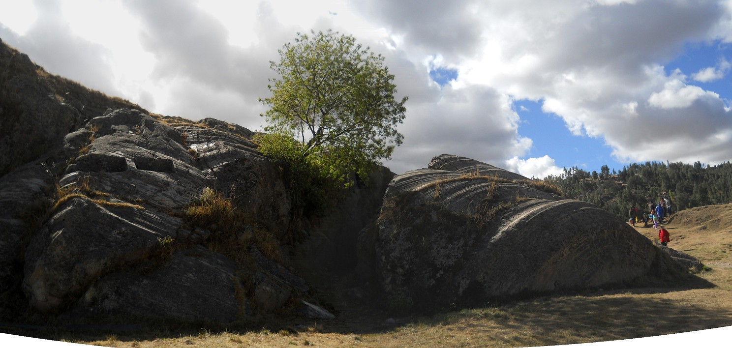 En el otro lado de la colina aplanada de Sacsayhuamán son los toboganes sin fin. Ninguno sabe, cómo han formado esas toboganes. Cuando hubiera sido una bomba atómica así la zona debería ser radioactiva - se debería medir (!).