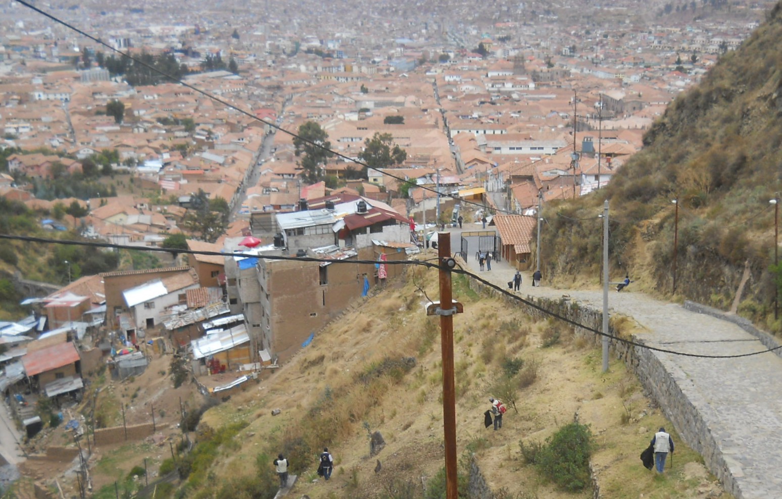 Cusco Sacsayhuamán 16: El camino regreso a Cusco, colina con trono - vista a una subida