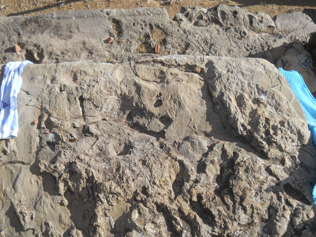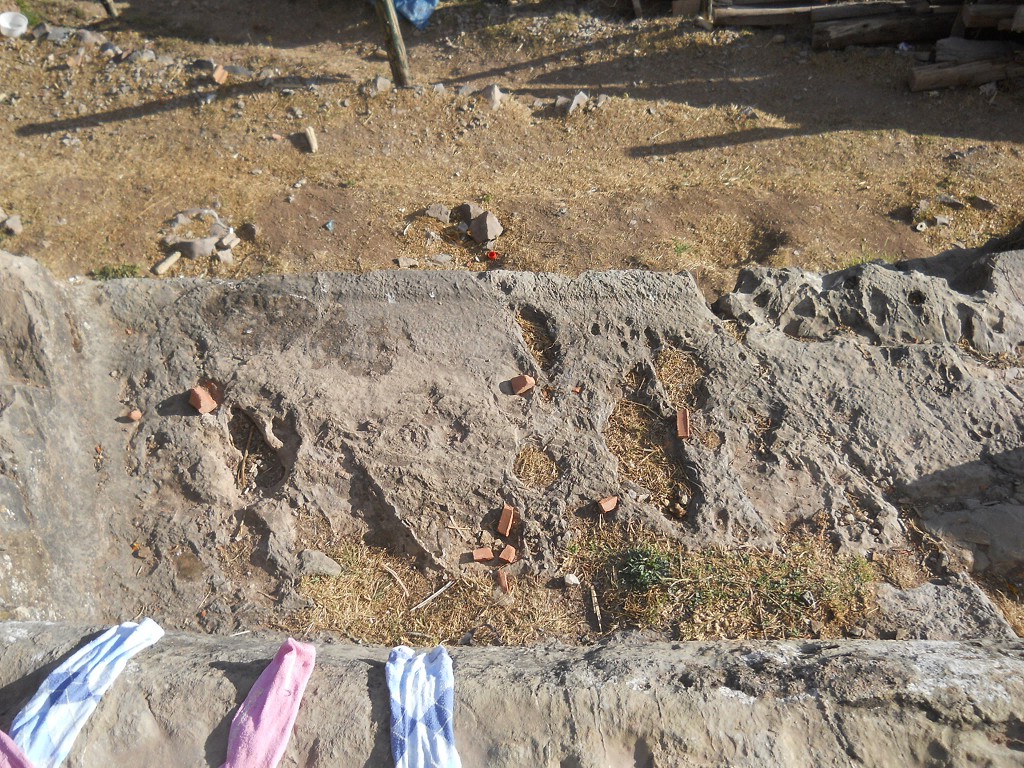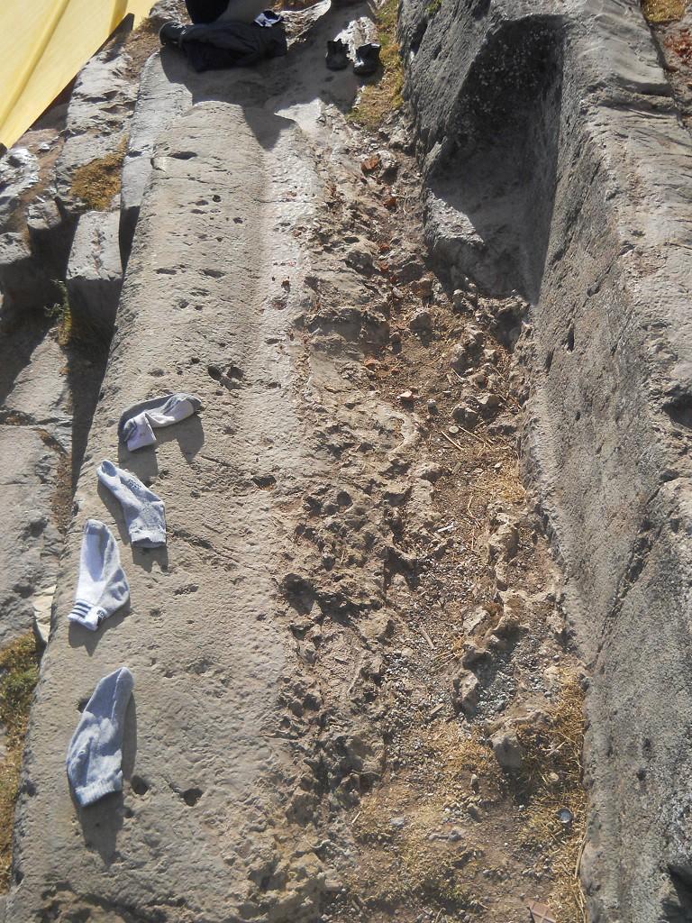 Colina con un trono - piedras largas cortadas con canalitos y huecos