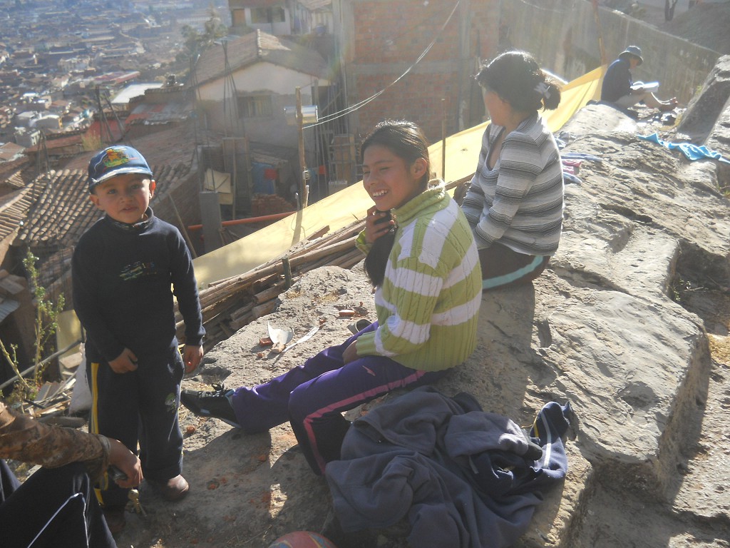 Cusco Sacsayhuamán 16: El camino regreso a Cusco, niños cusqueños de Cusco