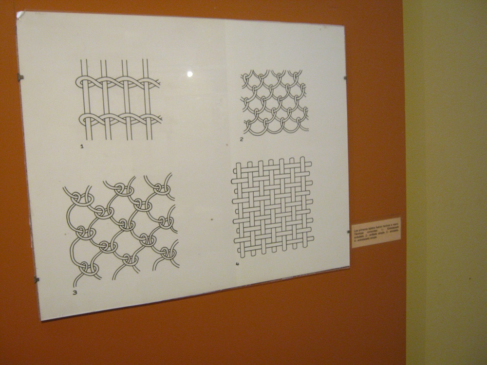 1. wogendes Verflechten; 2. beringen; 3. verknüpfen; 4. einfaches Verflechten |