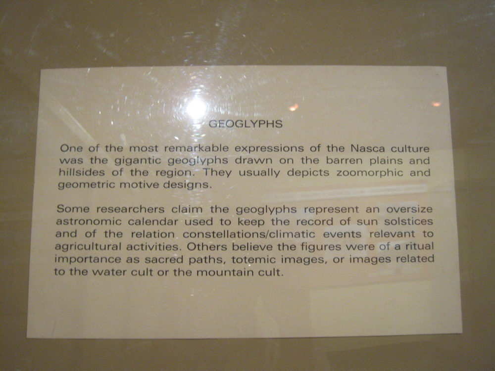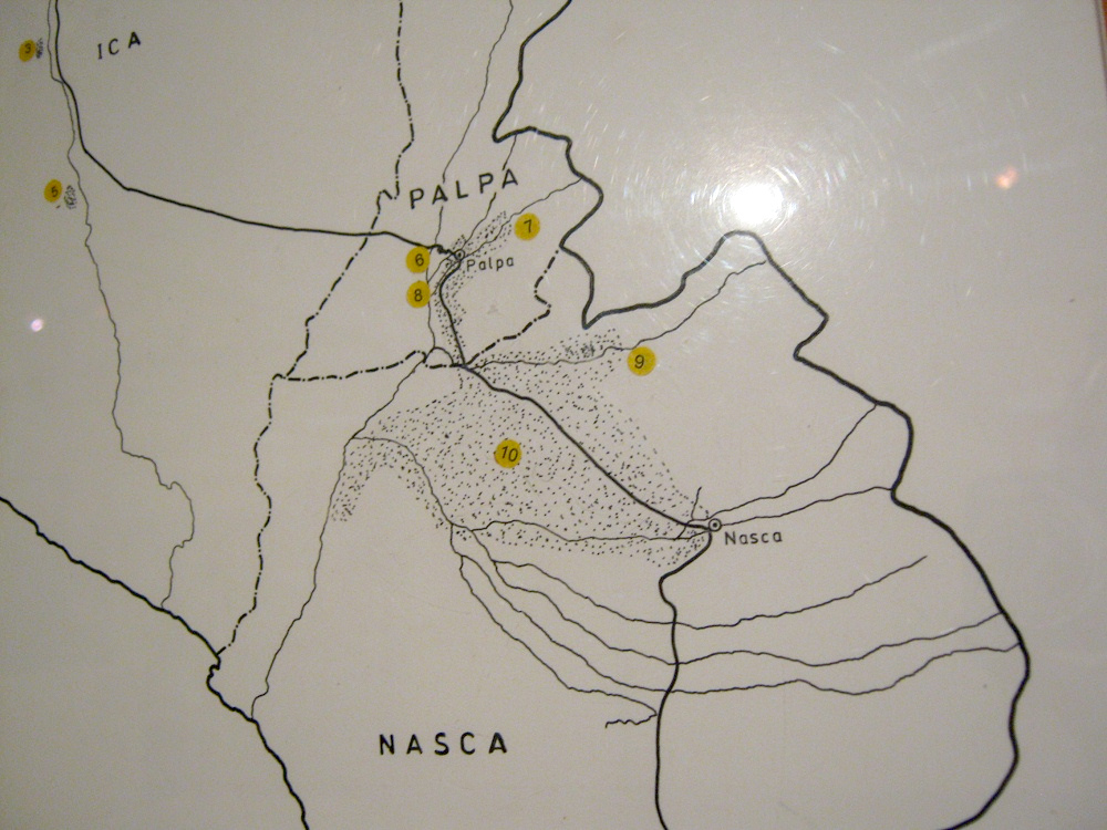 ![]() Grosse Tafel mit Angaben über Geoglyphen und Linien in der Region Nasca |