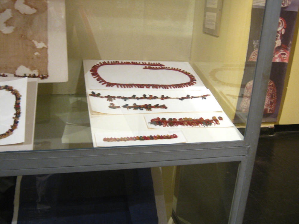 Vitrine mit Webereien der Nasca-Kultur, Nahaufnahme