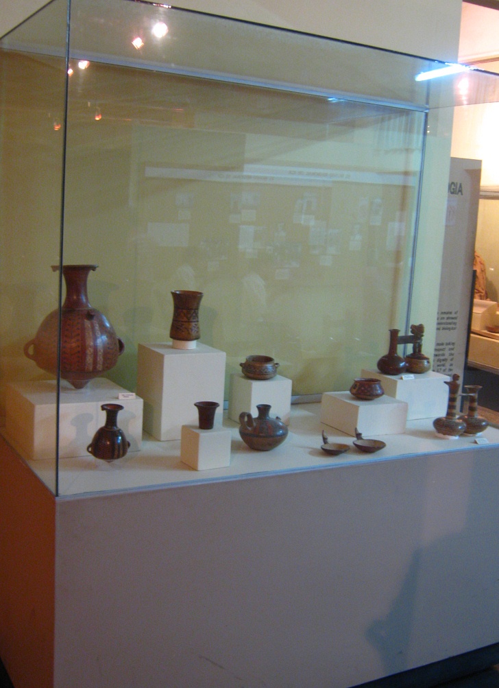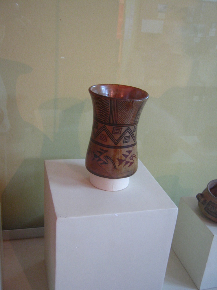 zweite Vitrine mit Inka-Keramik mit geometrischen