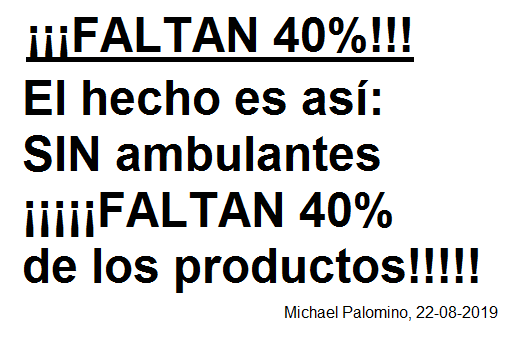 faltan arp. 40% de los productos, y faltan 100% de comidas