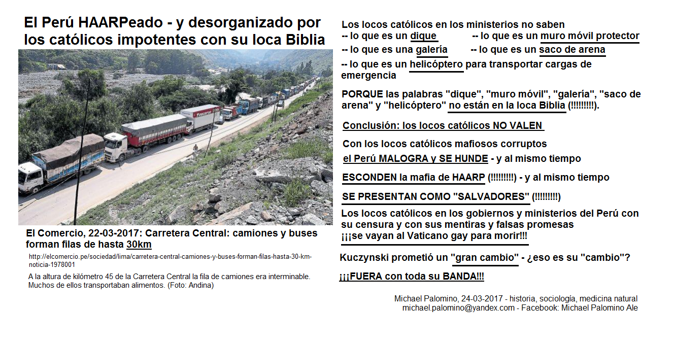 24-03-2017: El Perú es HAARPeado - y desorganizado por los católicos impotentes con su loca Biblia - Kuczynski prometió un "gran cambio" - el desastre es su "cambio" - y esconde HAARP - ¡fuera con su banda!