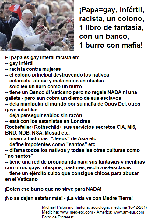 23-11-2017: El papa es gay infértil y protege pedófilos criminales etc.