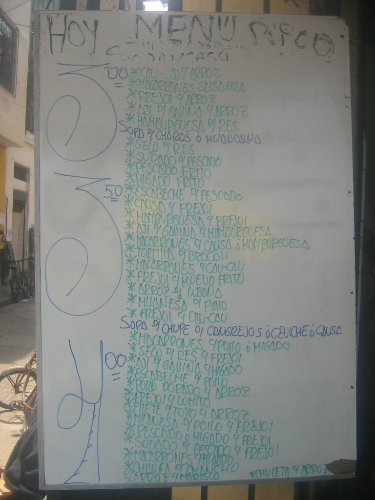 Los menús en 2007 costaron 3 soles, 3,50 soles o 4