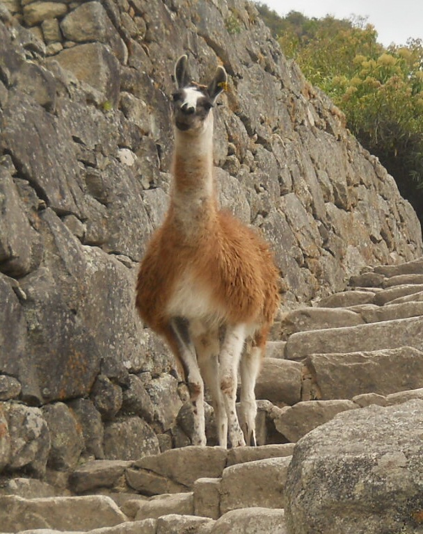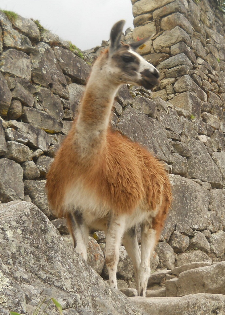 Machu Picchu: vicuña con mirador Huaynapicchu 02 -