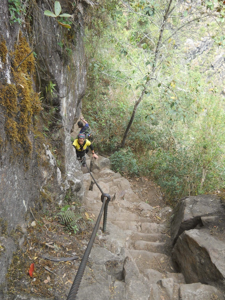 Camino al mirador Huaynapicchu, escalera con el mirador