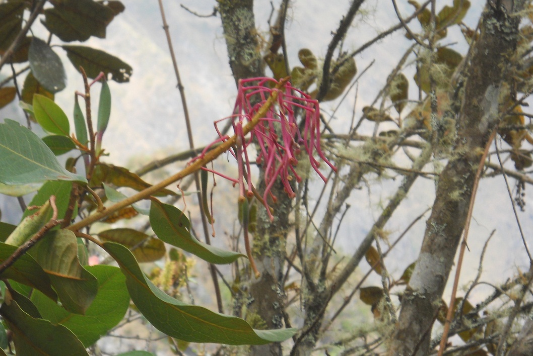 Camino al mirador Huaynapicchu, arbusto con flor rosada