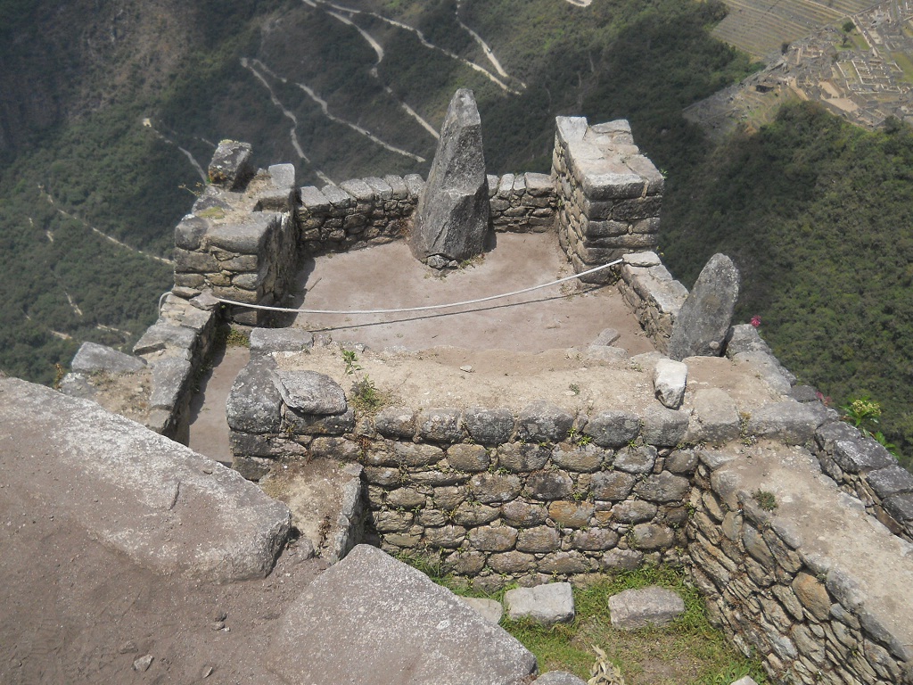 reloj solar de Huaynapicchu con la vista a Machu Picchu