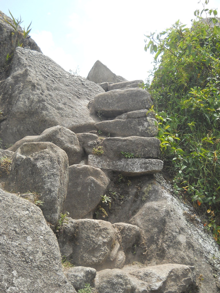 Subida a la cumbre de Huaynapicchu, escalera irregular
