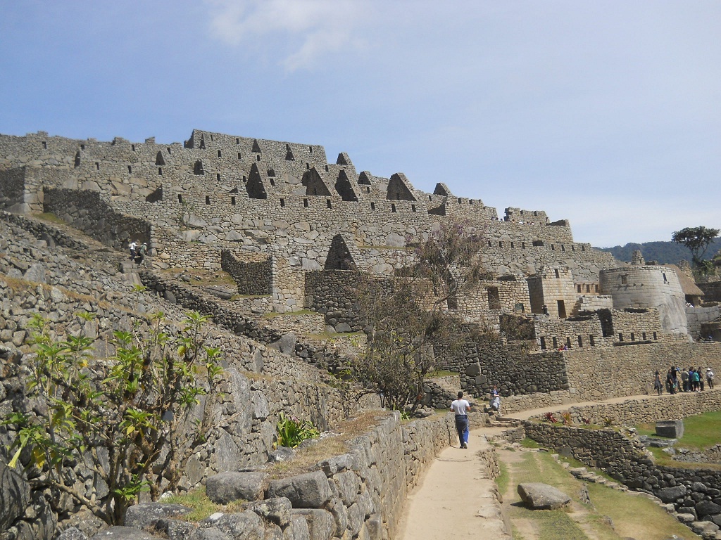 Machu Picchu, the view on the Sun temple from above and to the terraces in the background