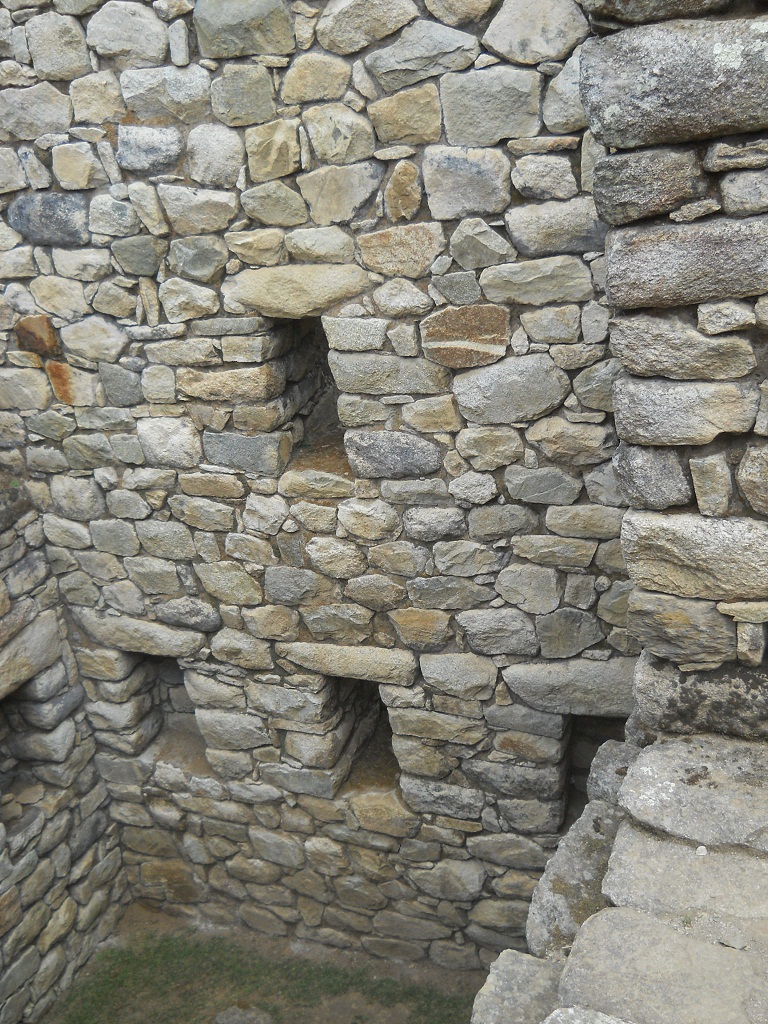 Machu Picchu, the house of the princess, the walls 1,2 - the two floors with door, windows and niches, and with local Putucusi Mountain