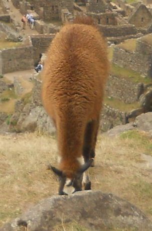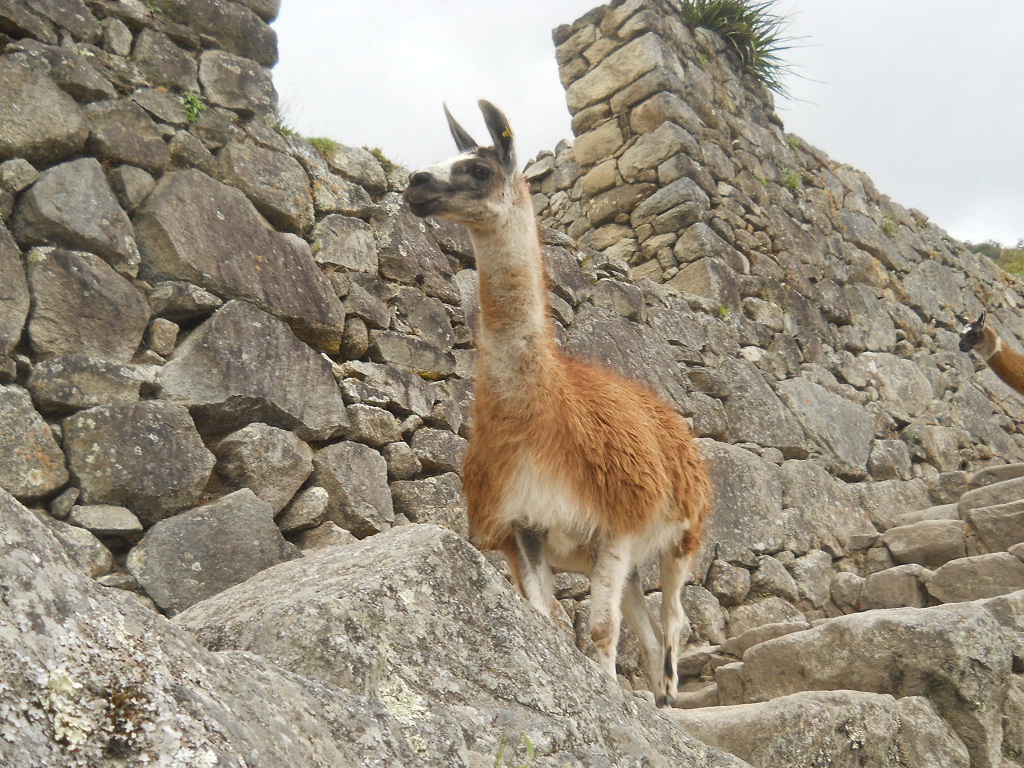 Huaynapicchu 02 - vicunia with Machu Picchu (big quarry,