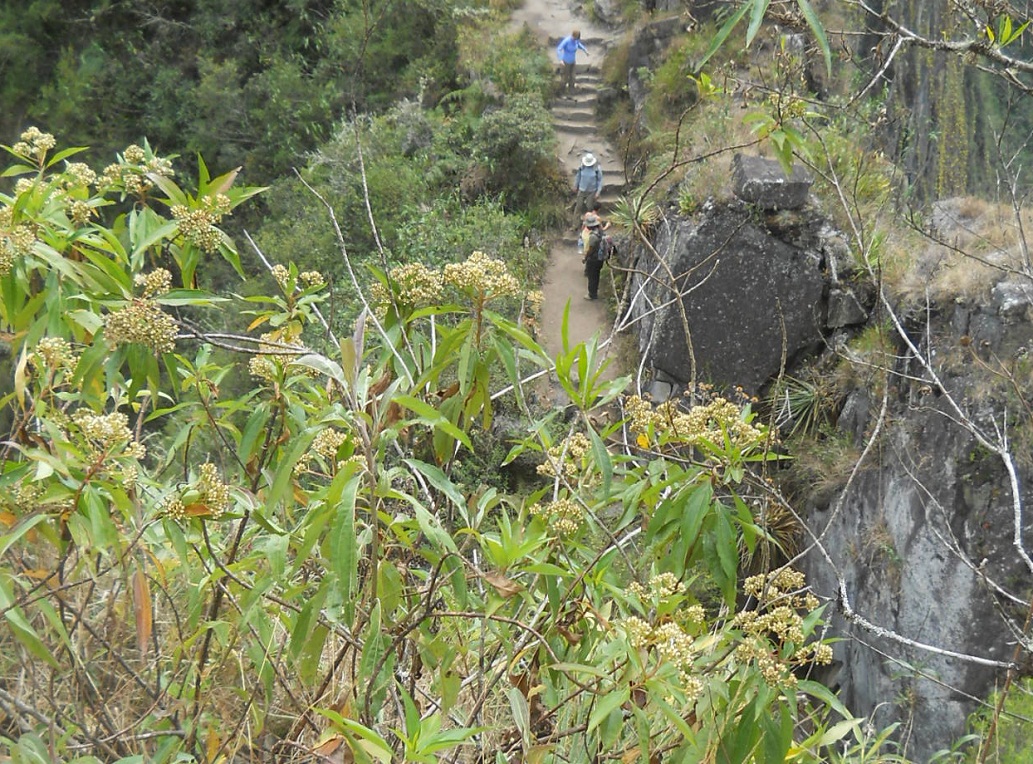 Trail to Huaynapicchu, some plants like shrubs, ferns,