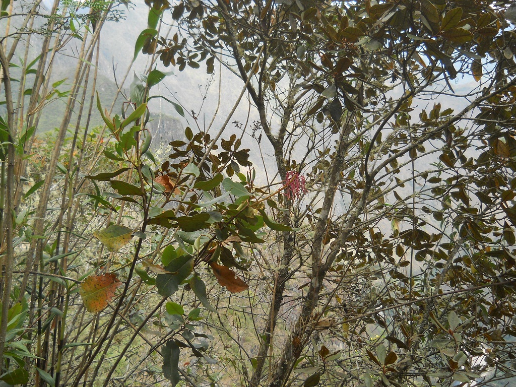 Trail to Huaynapicchu, shrub with rose flowers - zoom
