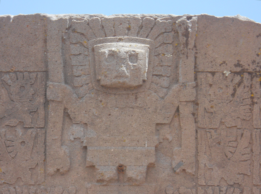 El dios creador Wiracocha en la puerta del sol de Tiahuanaco con sus asistentes, primer plano [9] - Wiracocha, primer plano [10]