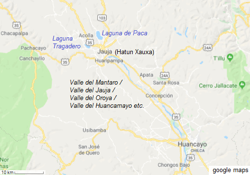 La laguna de Paca cerca de Jauja (Xauxa) en el valle del Mantaro / valle del Huancamayo [2] - Mapa del Perú con Lima+Huancayo+valle del Mantaro / valle del Huancamayo [mapa3] - El valle del Mantaron con Jauja+con la laguna de Paca [mapa4] - Tambor andino (quechua: tinya) [5]