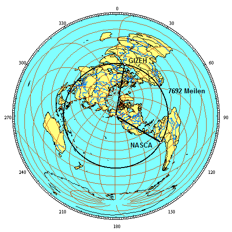 -- Linie Nasca-Gizeh als Äquator der Vorzeit mit allen anderen kulturellen Hauptorten, Vogelperspektive: