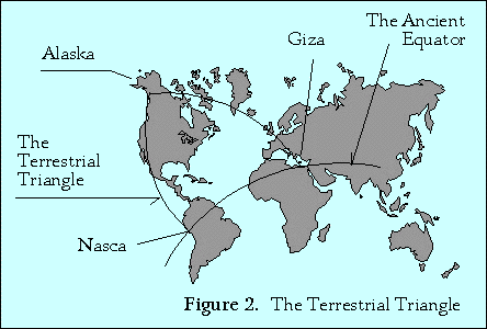-- line Nazca-Giza as equator of former times with all other cultural centers, sight from above: