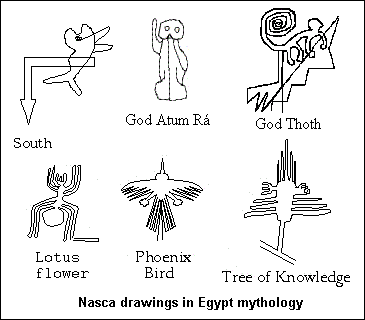 -- geoglyphs of Nazca with the indications of old Egypt culture: http://www.viewzone.com/nasca3000.html (James Bowles)