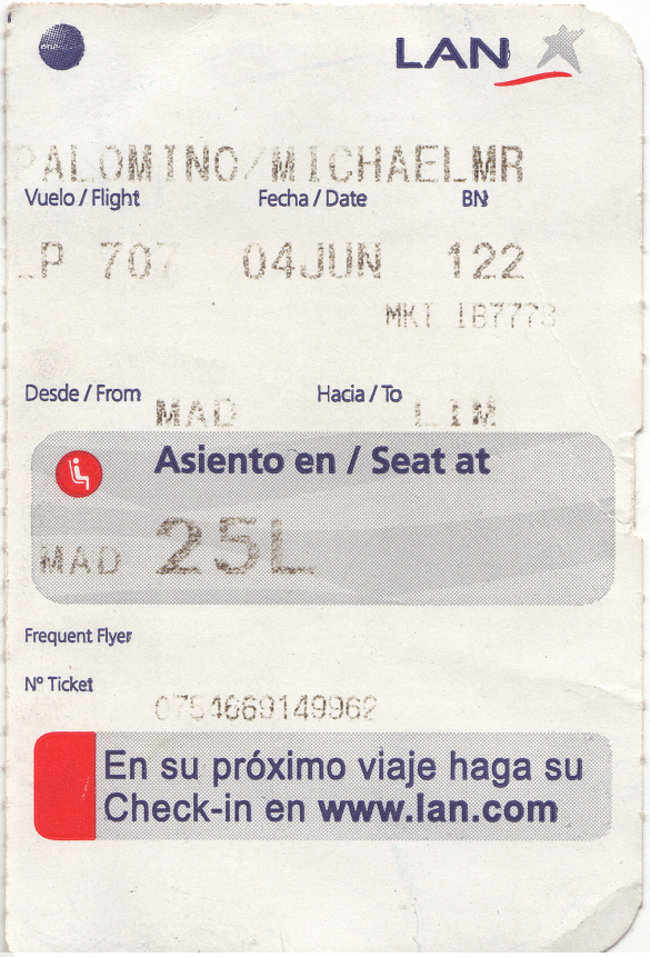 Madrid nach Lima vom 4. Juni 2008, Abflug 17 Uhr,