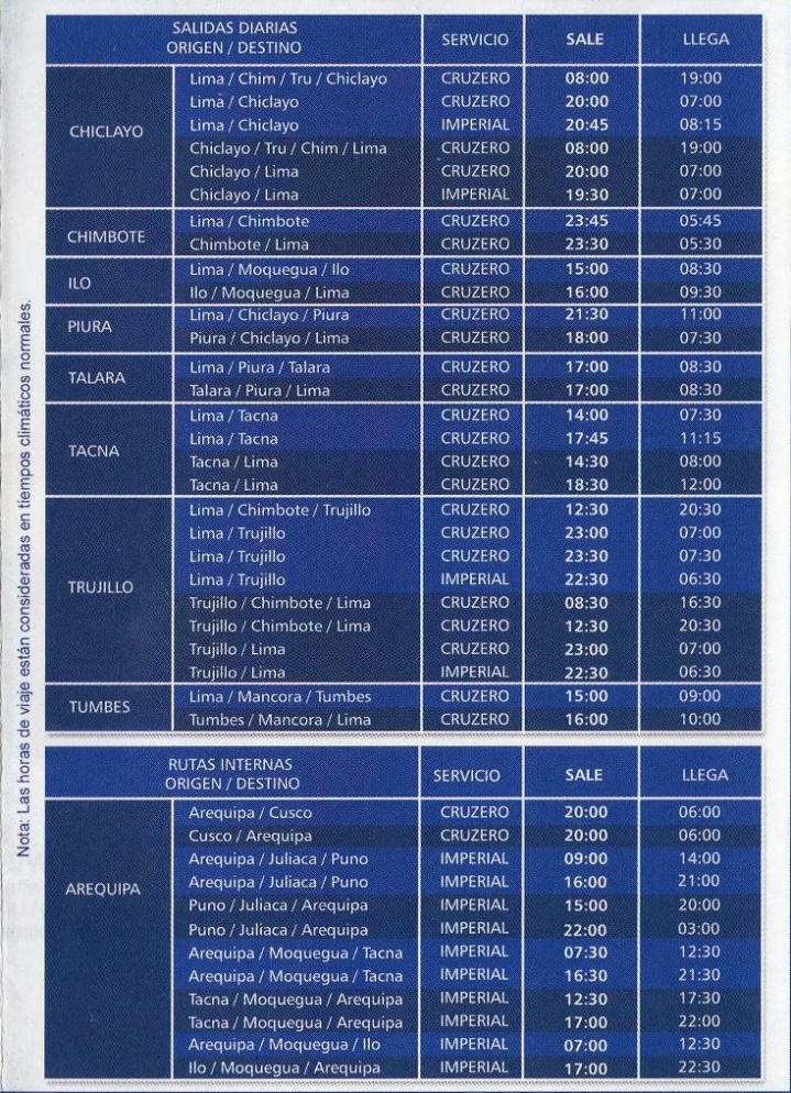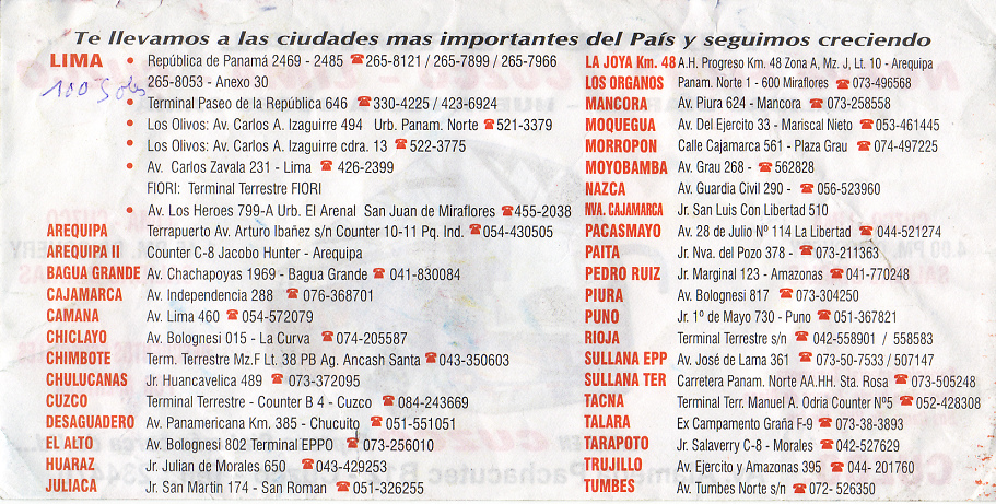 Busfirmen, die in ganz Peru oder in grossen Teilen Perus tätig sind