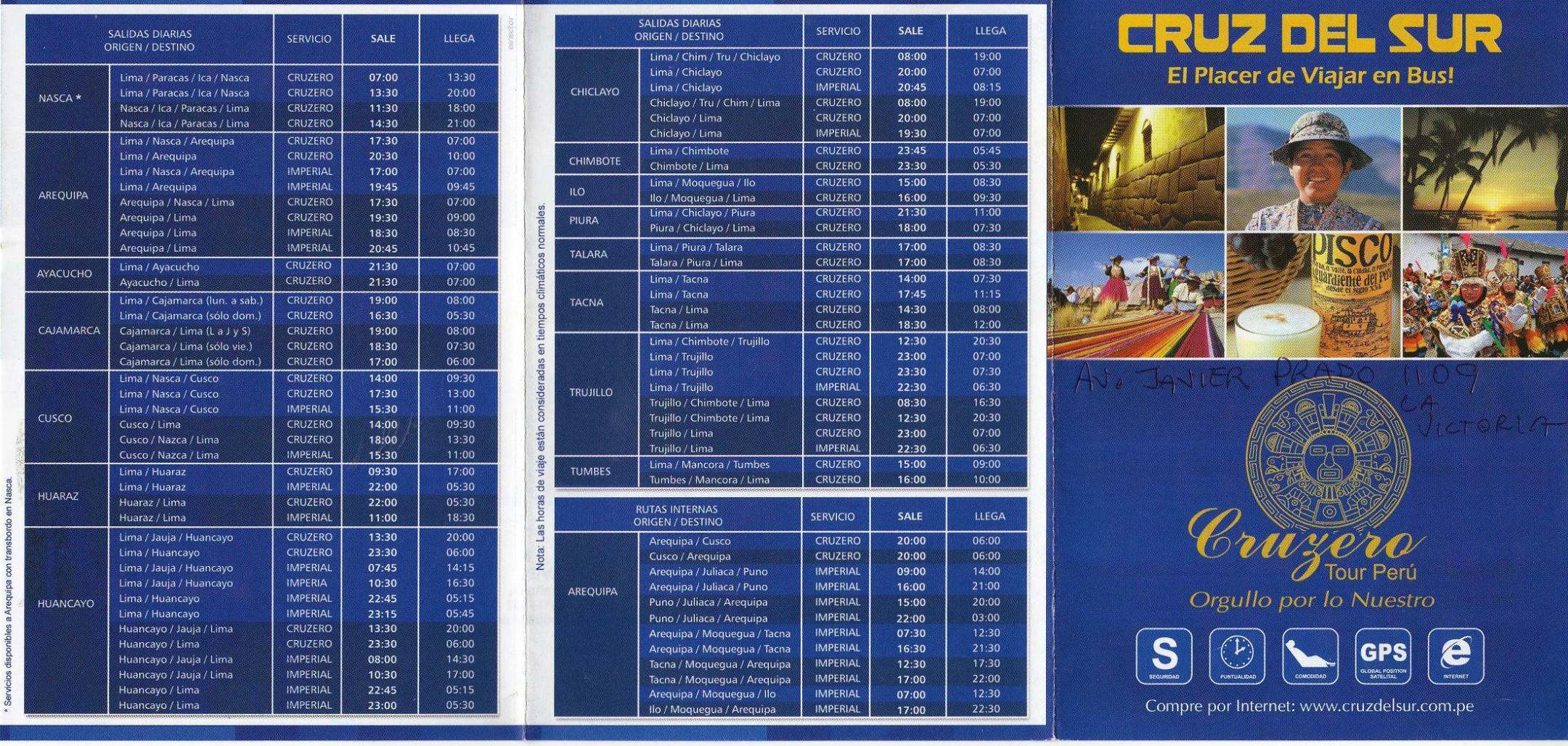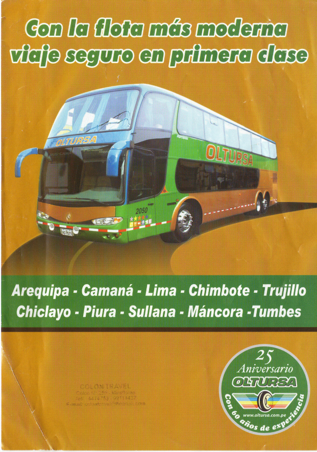In Peru ist es Tradition, dass viele Nachtfahrten stattfinden, und dass dann Chauffeure am Steuer einschlafen und so Massaker produzieren, weil Busse in entgegenkommende Busse krachen, oder weil Busse mit schlafendem Buschauffeur in Lastwagen krachen, oder weil Busse mit schlafendem Buschauffeur in Schluchten stürzen etc. Solche Unfälle kommen in Peru ca. einmal pro Woche vor, jeweils mit 20 bis 30 Toten. Man sollte also unbedingt Nachtfahrten vermeiden, vor allem im Gebirge. In Europa finden solche Nachtfahrten im Gebirge erst gar nicht statt. Wenn sich eine Nachtfahrt nicht vermeiden lässt, dann sollte man sich in der Busmitte platzieren, und bei einem Doppeldeckerbus im Parterre und sicher nicht oben oder und sicher nicht zuvorderst. Sonst überlebt man einen Sturz in eine Schlucht oder den Kuss mit einer Hauswand oder mit einem entgegenkommenden Bus nicht.